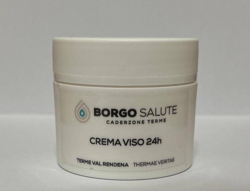 Crema viso 24h 50 ml vaso in plastica Proprietà: La presenza dell’acqua termale delle Terme Val Rendena combinata con antiossidanti e vitamine, rendono questa crema non untuosa adatta a reidratare e nutrire la pelle del viso, proteggere da radiazioni solari e idratare in profondità. Emulsione leggera indicata per pelli normali e fragili. Grazie alla presenza della vitis vinifera è indicata anche per pelli sensibili e arrossate, previene la formazione di radicali liberi, lasciando la pelle del viso luminosa, compatta ed elastica. Modalità d'uso: Stendere sul viso al mattino ed alla sera dopo la pulizia. L’uso quotidiano aiuta a prevenire e contrastare segni dell’invecchiamento cutaneo.